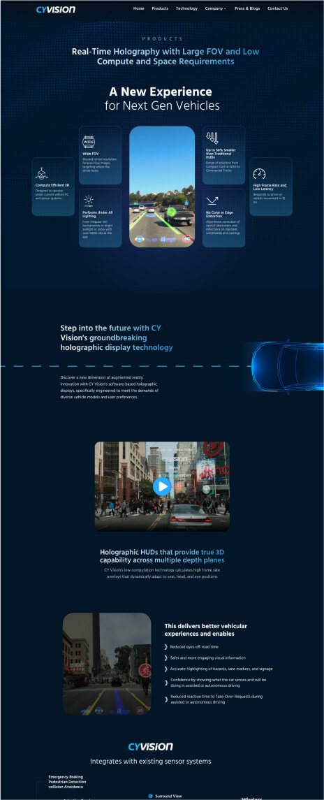Website identity and 3D HUD visualization combined, spotlighting Cyvision’s AR innovations and revolutionizing how users perceive automotive displays.