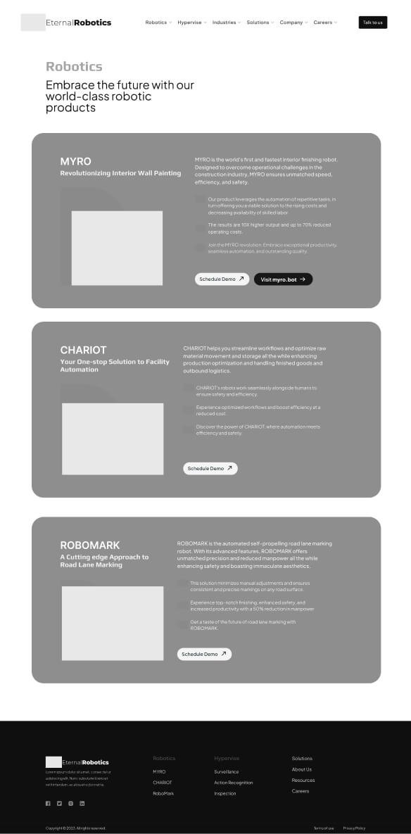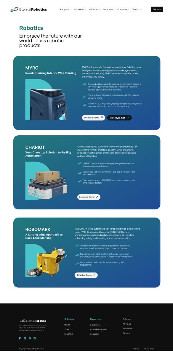 Developed cohesive brand guidelines and a rebuilt website, elevating Eternal Robotics from a small-scale presence to a global contender.